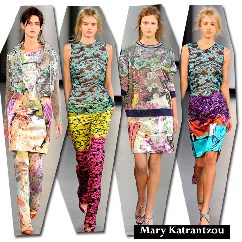 As propostas mais extravagantes pertencem à jovem designer Mary Katrantzou - um talento cada vez mais conhecido em todo o mundo, que já teve a honra de colaborar com a famosa Topshop.